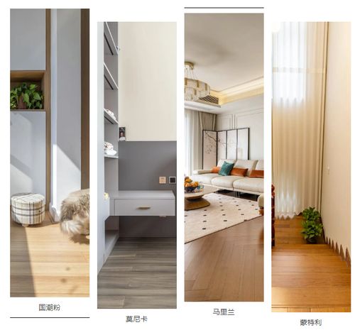 如天格地板国潮粉、莫尼卡、马里兰、蒙特利,由浅至深,着色均匀温润、不易褪色暗沉。适配追求家居个性化、喜欢灵活搭配配色的人群,堪称“配色万·能款”。