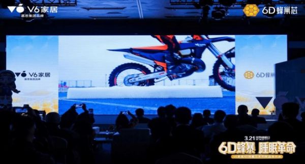 3月14日,深圳科技馆内,V6家居举办“6D蜂暴睡眠革命”系列新品发布会。围绕“用科技实现舒适生活”的品牌主张,现场通过极限飞车挑战、集装箱压顶、烟雾穿透、排水防潮四大测试,将6D蜂巢芯的支撑性、透气性、排湿性等技术指标转化为可感知的视觉呈现。在3.21世界睡眠日来临之际,这场硬核发布会让6D蜂巢芯的科技性能真正实现了可量化、可感知、可触及,也让V6家居“用科技实现舒适生活”的品牌主张,从一句口号变成了看得见的事实。