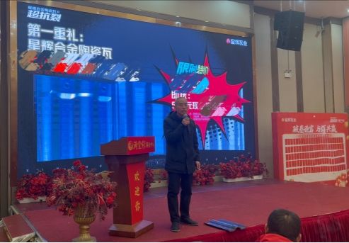 活动在星辉瓦业销售副总监余卓的启幕致辞中正式拉开帷幕。余总立足行业宏观格局,深刻解读市场发展趋势,并提出具有前瞻性的创新策略与战略规划。他强调,从产品研发到品质标准构建,从市场纵深布局到营销模式创新,星辉瓦业始终与终端伙伴同心并力、协同进化,共同开拓更广阔的市场版图。