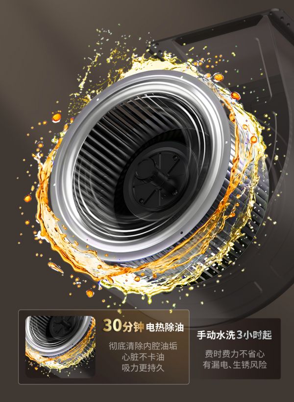 而对于难以彻底清理的油污,樱花吸油烟机K602搭载电热除油系统,只需一键启动,便可在30分钟内完成双遍深度清洁,高温溶解顽固油污,焕新机芯动力,既避免吸力的下降,也大幅减轻日常维护负担。