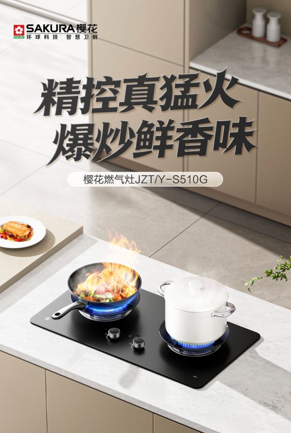 用猛火点燃家的味道,用科技守护每一份幸福,在樱花燃气灶S510G的陪伴下,家里的每顿饭,都能成为温暖满溢、香气四溢的幸福时光。