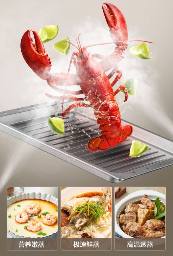 让每一口饭菜都鲜嫩多汁。樱花蒸烤箱C5502A搭载外置式4.0全钢双核蒸汽发生器,可产生低湿干态高焓蒸汽,宽流直喷瞬时穿透食材,紧紧锁住水分和原生态营养素;配合动态排放置换回旋冷凝系统,可有效减少蒸汽外排和腔内积水,让每一口滋味都健康可口。