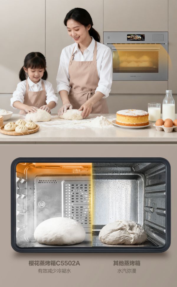 樱花蒸烤箱 C5502A用智能烹饪打造出香气四溢的佳肴,让每一餐都是对家人的温暖款待,让厨房里的每一刻,都成为幸福满溢的生活仪式。