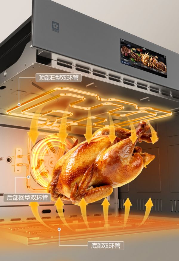烤制食物时,温度不均,极易影响食材口感。樱花蒸烤箱C5502A采用PID算法精准温控,可实时进行温度反馈,全腔热风循环及多维加热管的布局,让每一层食材都能均匀受热,让出炉的美味外酥里嫩,饭菜色香味俱全。