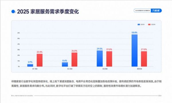 近年来,家居行业数字化转型持续深化,线上线下渠道深度融合,电商平台常态化促销叠加各地政策补贴,传统旺季的市场表现逐渐消弭,家居服务需求呈现均衡分布。