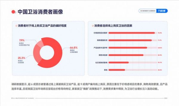 超9成用户倾向线上消费,原因在于价格透明且优惠多,购物便捷高效,产品选择丰富。我国卫浴市场表现出明确的价格导向特征。
