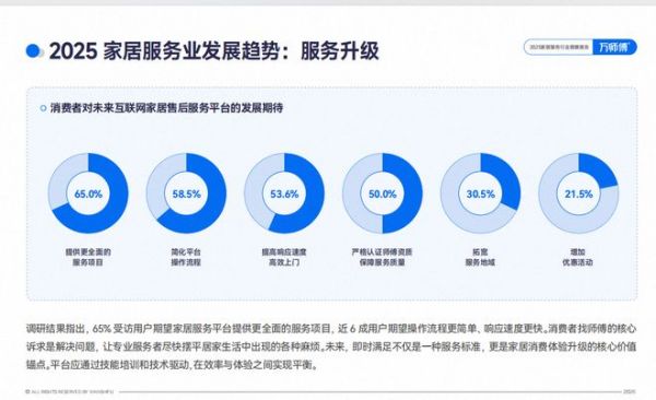 服务行业的核心价值在于服务本身,消费者找师傅是为了解决问题。调研结果指出,65%受访用户期望家居服务平台提供更全面的服务项目。