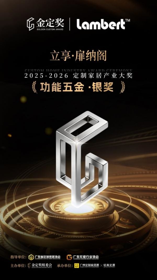 近日,在行业内备受关注的的广州定制家居展及轻高定展上,立享系列惊艳亮相,不仅“刷屏”罗兰、南洋迪克、欧客A8等各大定制家居品牌展位,更凭借其核心王牌单品——立享·扉纳阁荣获金定奖·2025-2026定制家居产业大奖《功能五金·银奖》殊荣,荣耀加冕。