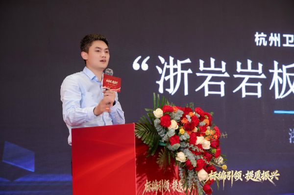 浙岩岩板创始人卢泉,上台为我们分享《材料革新新风向》,解读前沿材料技术如何赋能卫浴产品升级。他聚焦岩板材料革新,介绍浙岩适配杭州卫浴产区的高性价比岩板产品,破解传统岩板痛点,依托供应链优势助力产区企业提升核心竞争力、实现产品品质升级。