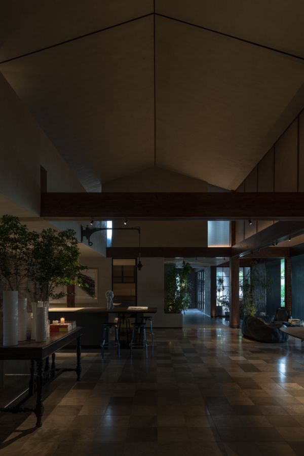 这种对时间的观看,在安小姐的厨房ASTER北京展厅里尤为透彻。2024年落成的这个项目,被他命名为“时间的形状”。改造孙河52号院内一栋独立建筑时,他保留了原建筑的三级结构,却重构了它的秩序:前区咖啡厅压低层高,形成亲近尺度;一条刻意约束出的“小径”,成为进入主体前的情绪转换带。“短暂、瞬时、偶然,是艺术的一半;另一半是永恒和持久。”空间里,深浅不一的石砖、自由生长的绿植、收集而来的中古家具,都在以自己的方式诉说着时间。