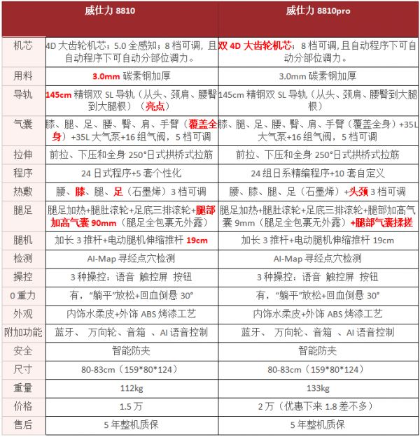 8810pro比8810贵了大概4000块,换来的是双机芯的效率翻倍和更精准的按摩体验,还是很值得的。