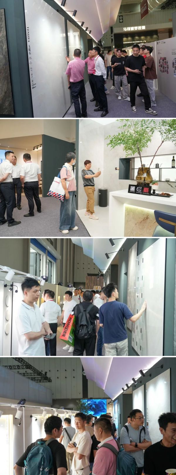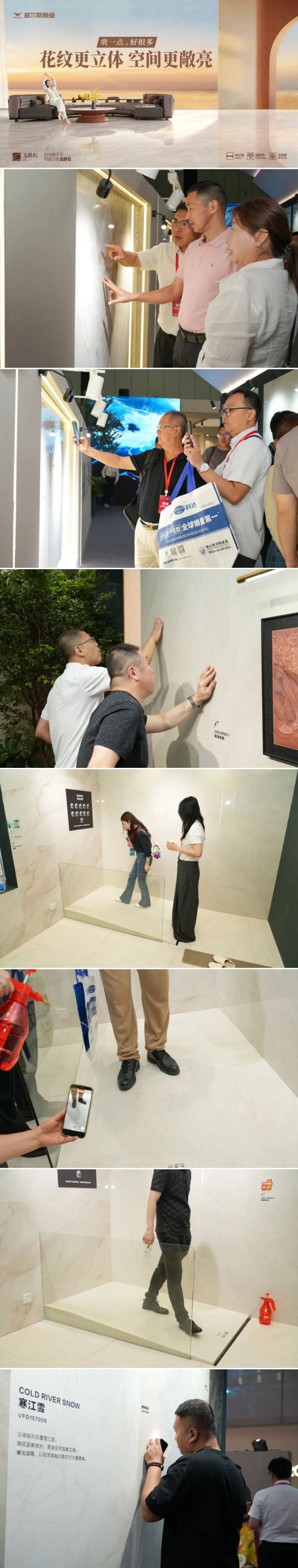 观众们近距离品鉴了温润通透的玉质石,立体肌理的天工石,亲身感受玉质釉、立体精雕、柔光漫反射等核心技术带来的震撼触觉与视觉体验,纷纷表示“花纹更立体,空间更敞亮”,依托独创玉质釉、立体精雕、柔光漫反射等核心技术,彰显了行业回归产品力的主流趋势。