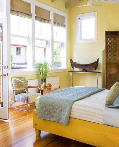 推荐理由:黄色的墙壁和大量的自然光照射的房间可以构成暖暖的惬意的小窝,浅黄色的墙壁在自然光的照射下会显得更明亮,在荧光灯下又会柔和很多。