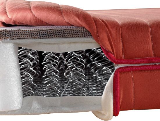 弹簧床垫:这是使用很普遍的床垫,性能较优,垫芯则是由弹簧组成。优点是弹性好,透气性较强,承受力较强。弹簧床垫是将一圈圈线径较粗的弹簧,以钢线连结固定,硬度较高,睡感硬实。