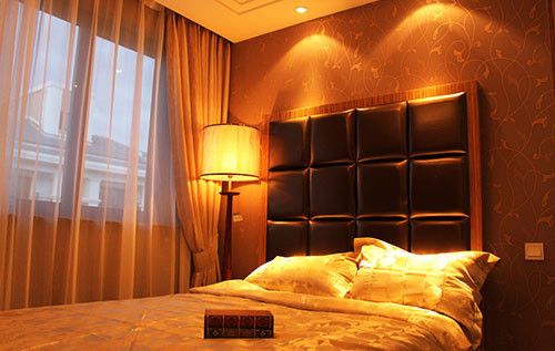 2、卧室灯光照明的基调应选用温馨和暖的黄色。床头上方可镶嵌筒灯或壁灯。也可在装饰柜中镶嵌筒灯,使室内更具浪漫与舒适。