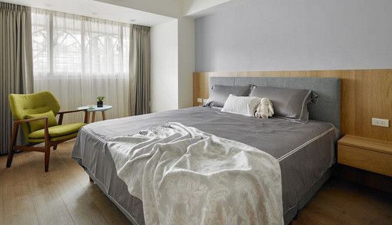 卧室利用整面的橱柜带来大容量的收纳空间,将杂物整齐摆放,并通过灰白配色,营造出温馨,舒适的睡眠环境。