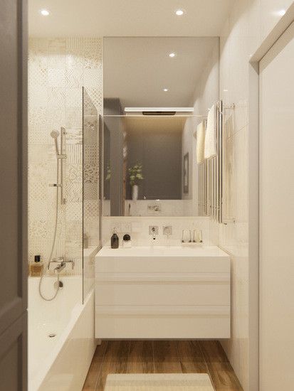 洗浴室利用纯白色调营造出宽敞的视觉效果,灰色木料,灰白花砖,轻松点缀出优雅氛围。