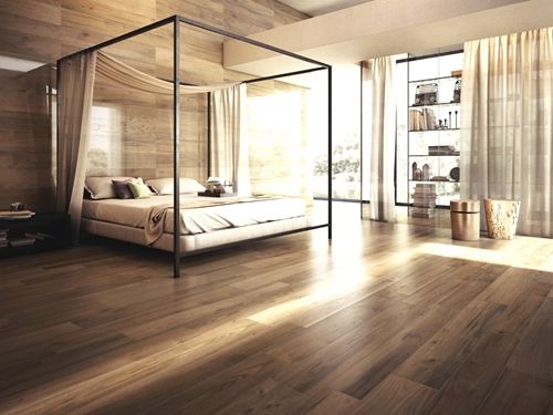 木纹砖的纹理及色彩,带有一种让人忍不住想要靠近的吸引力,令卧室成为每个人心中最柔软温暖的存在。