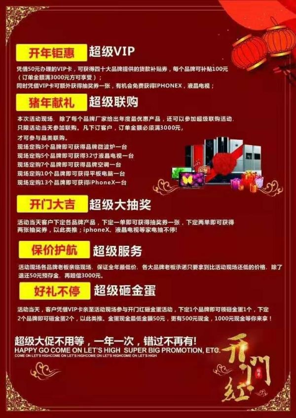 猪年献礼,超级联购保驾护航,超级服务开年钜惠,超级VIP开年大吉:超级抽大奖好礼不停,超级砸金蛋