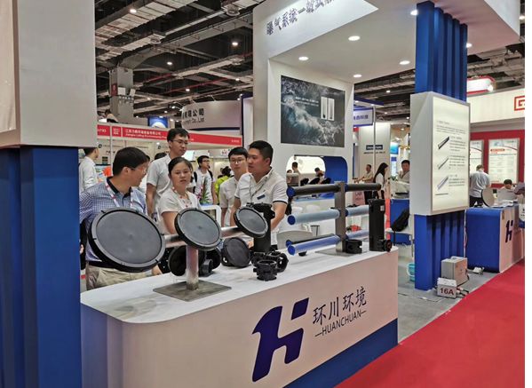 展会时间中,江苏环川环境工程有限公司凭借“出色的产品性能、环向受力均匀、较长的使用寿命、不易堵塞气孔、不倒灌污水及广泛的适应性”等多种前沿技术,吸引了众多中小企业代表及参展观众前来咨询交流。