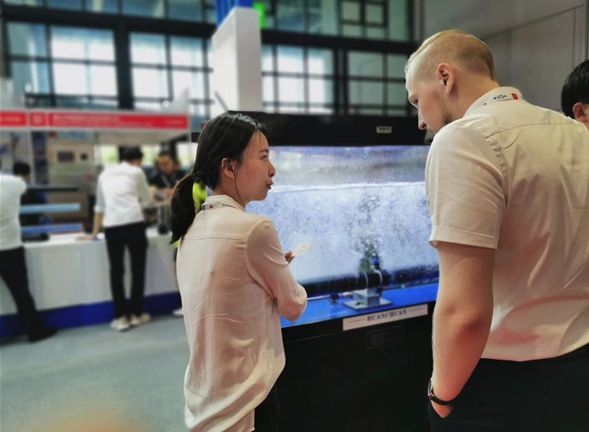 工作人员以专业水准的为每一位前来展位参观的客户介绍环川曝气器、OTT管式曝气器的功能、操作方法、注意事项及适用环境和场所。