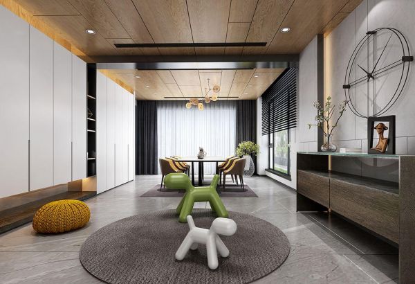 现代简约风格在设计上就要简单时尚看上去简洁、大气,现代风格的特色是将元素、色彩、照明、材料等材料运用多样化,经条化,注重空间的布局与使用功能。