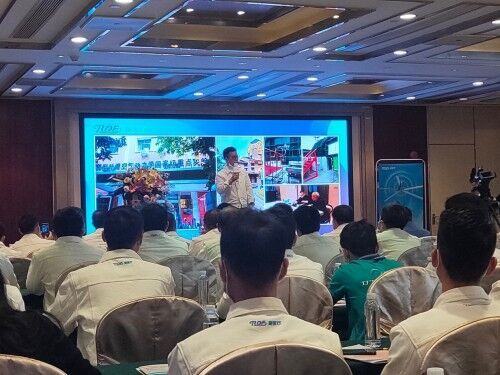 随后,广东悦玛空气处理股份有限公司营销总监:秦继伟先生就新品永磁伺服直驱工业大风扇特点与电机差异化结构进行全面解析。接着,悦玛公司股东代表为经销商进行授权证书颁发。最后,由悦玛公司董事长:温卫华先生对本次发布会做精彩总结。