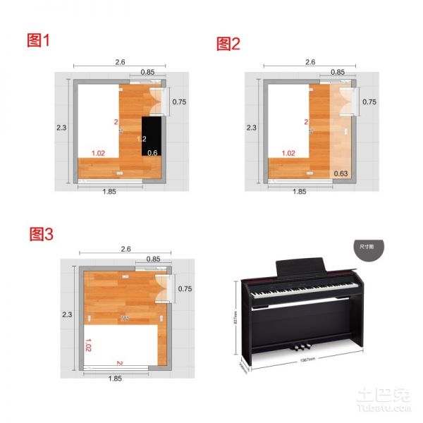 我的房间在阁楼上面,既没有空间,也没有格局,令我非常的头疼!他最大的问题是有两扇门(有一扇通向衣帽间),还有一个宽0.63m的斜坡(如图2:斜坡过低的地方放不了家具了)。现在房间里都是承重墙,打墙这种事就不考虑了,现在只需要调整家具摆放位置(或者有别的方法更好)。我房间里只需要床、桌子和电钢。现在电钢放不下,因为还带一个琴凳,不能坐床上,桌子也是,坐床上就不考虑了。 尝试过把床横着放(如图3),虽然可以利用斜坡下的空间,但是夏天会有虫子从窗户爬到床上,我很怕虫子。加上阁楼灰尘大,窗户担心扫雨的问题,后来又搬回来了。 总之请热心的大神帮帮忙吧。 电钢的长宽高是1.367X0.3X8.37(m),琴凳宽0.35m